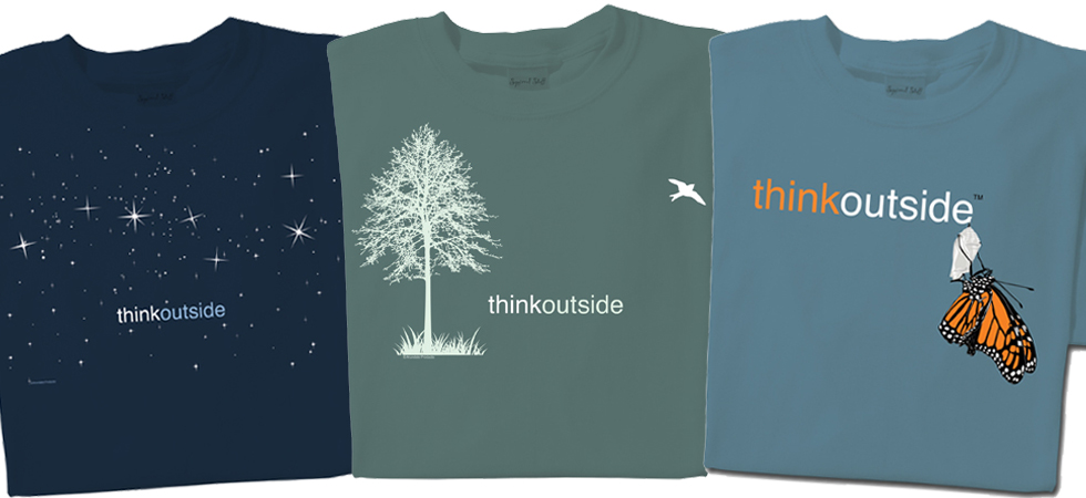 ThinkOutside thats it, think outside. Fun. Relaxed. Comfortable. We invite you to experience the ThinkOutside T-shirt Collection. Shop our line of super soft genuine organic & pure cotton nature-inspired direct dyed & garment dyed t-shirts expressing the beauty of nature with images of dragonflies, trees, stars, and more.