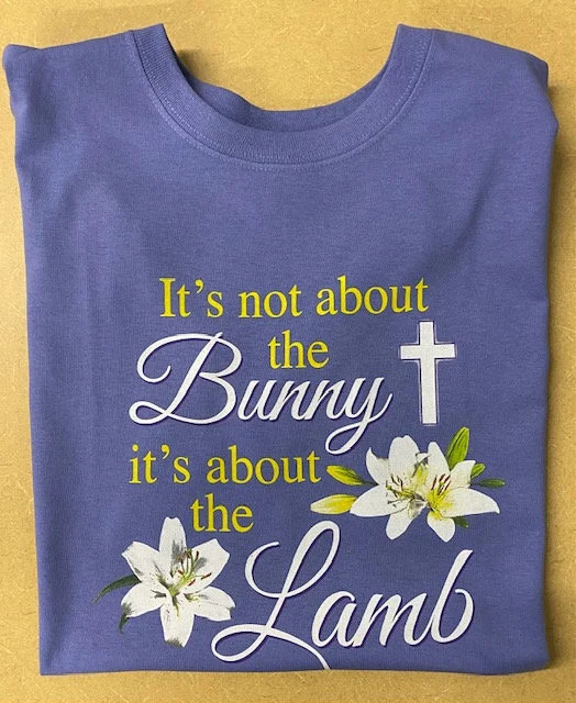 It's not about the bunny, it's about the lamb T-shirt | Purple Cotton Faith Shirt